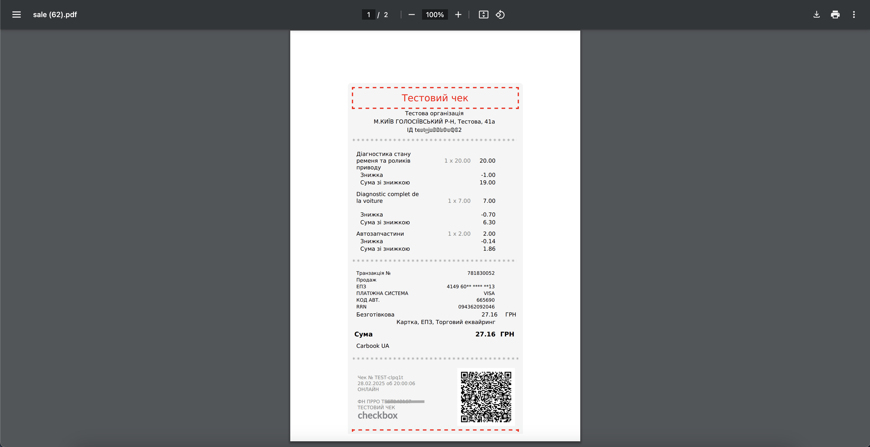 - Проведіть тестову транзакцію в Carbook.ua, щоб переконатися, що оплата проходить і чек формується коректно.