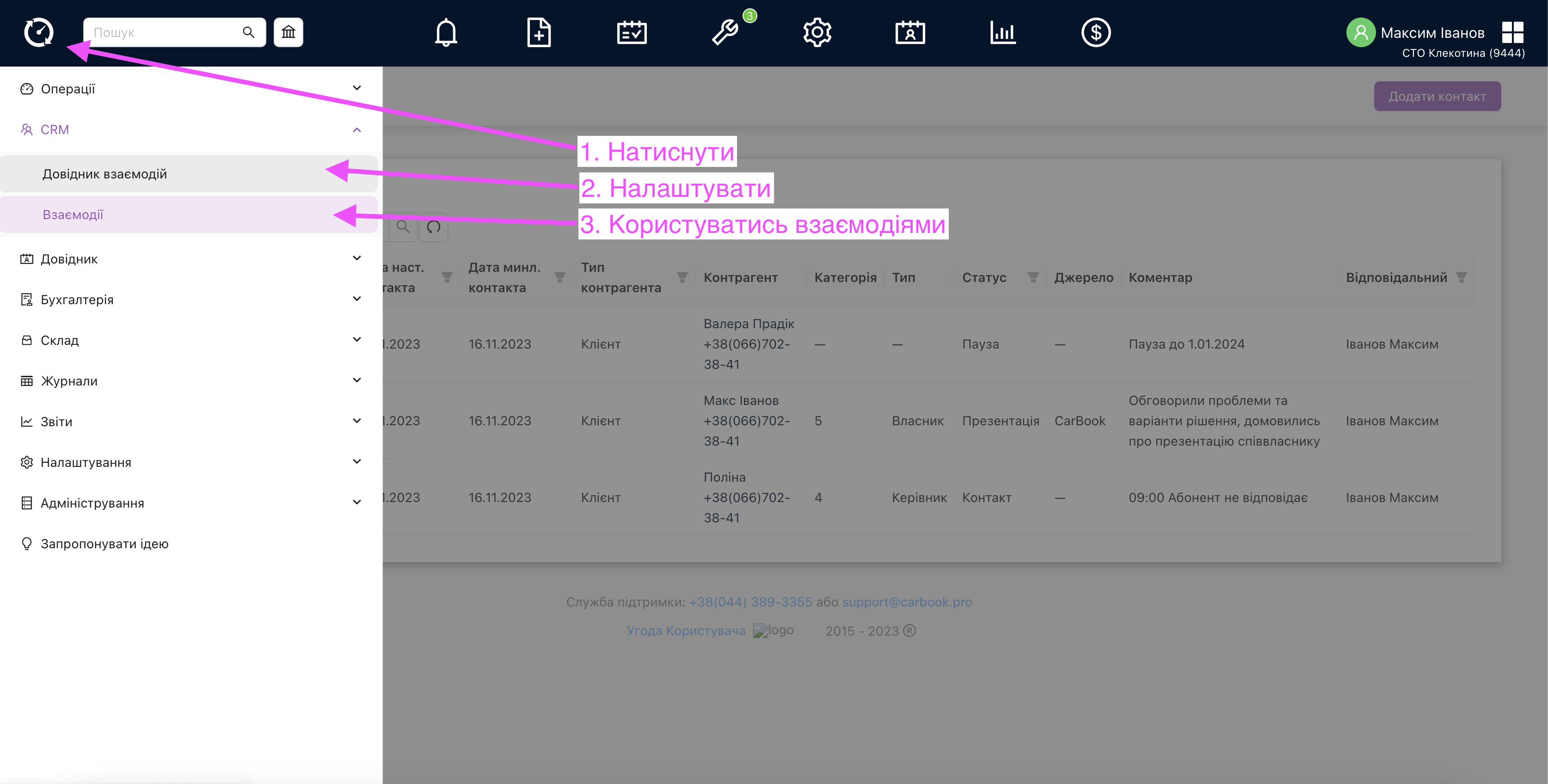 В CARBOOK функціонал CRM розширюється у взаємодії. Вони стануть у нагоді кожному, хто веде довгі перемовини з клієнтами або постачальниками. В документах взаємодій (ІАС) фіксуються всі контакти, домовленості, плануються наступні зустрічі й т.д.