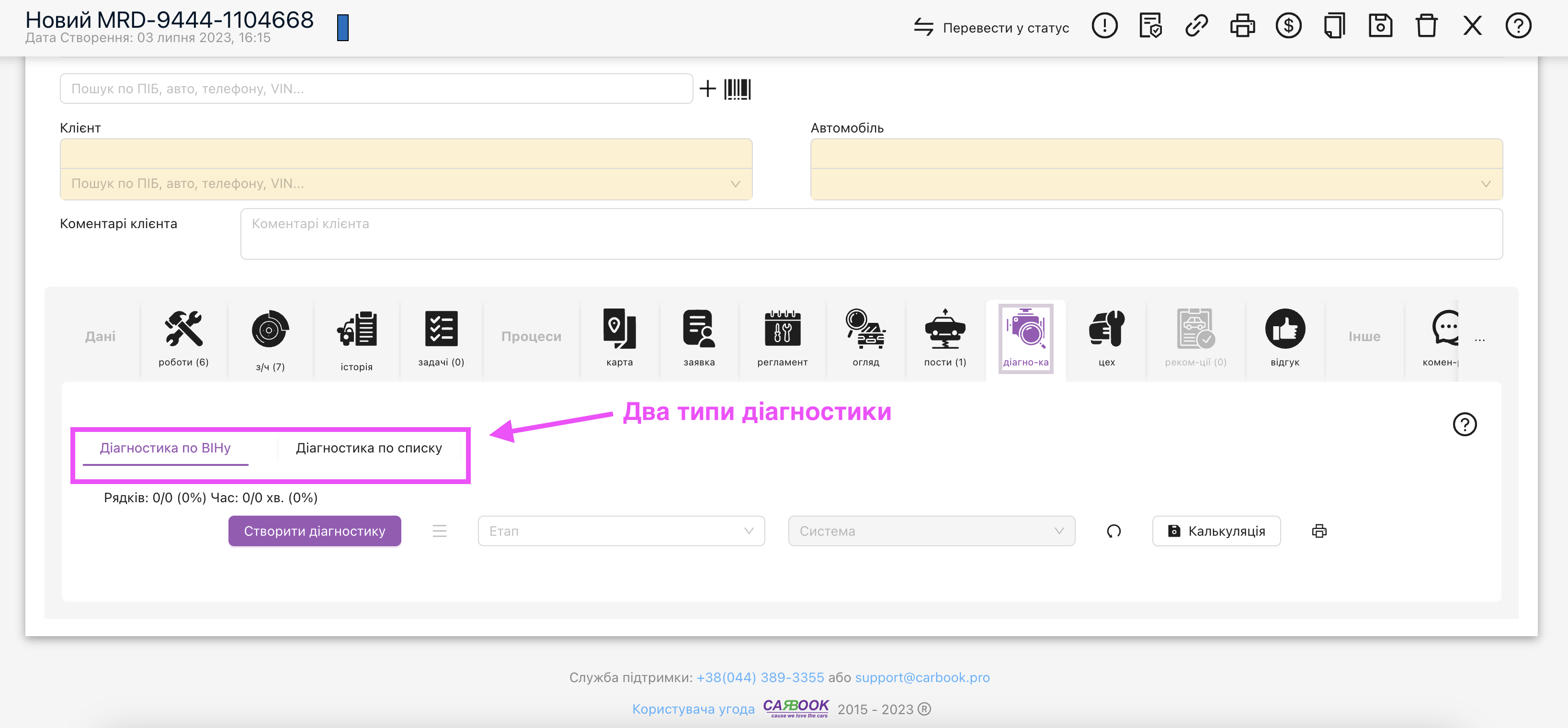 Наразі в системі Карбук є два можливих варіанти діагностики -“Діагностика по vin” та “Діагностика ходової частини – ДХЧ“.