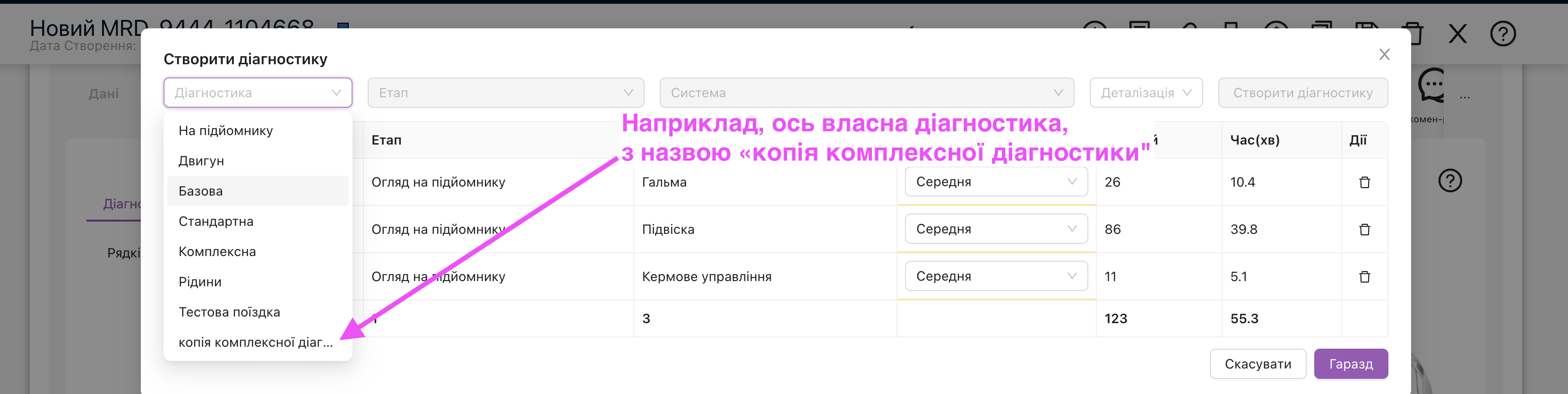 Таким чином, наступного разу, при створенні діагностики, можна буде обрати свій власний план, після огляду авто та провести діагностику.