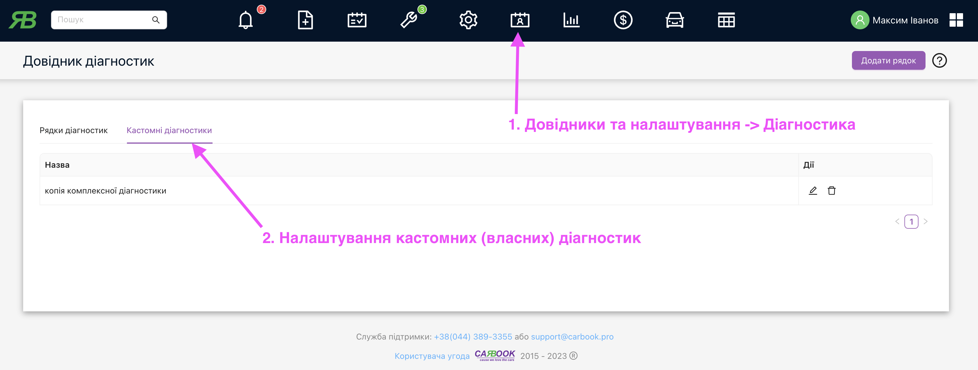 Як видалити власні діагностики з системи чи змінити їх назву?