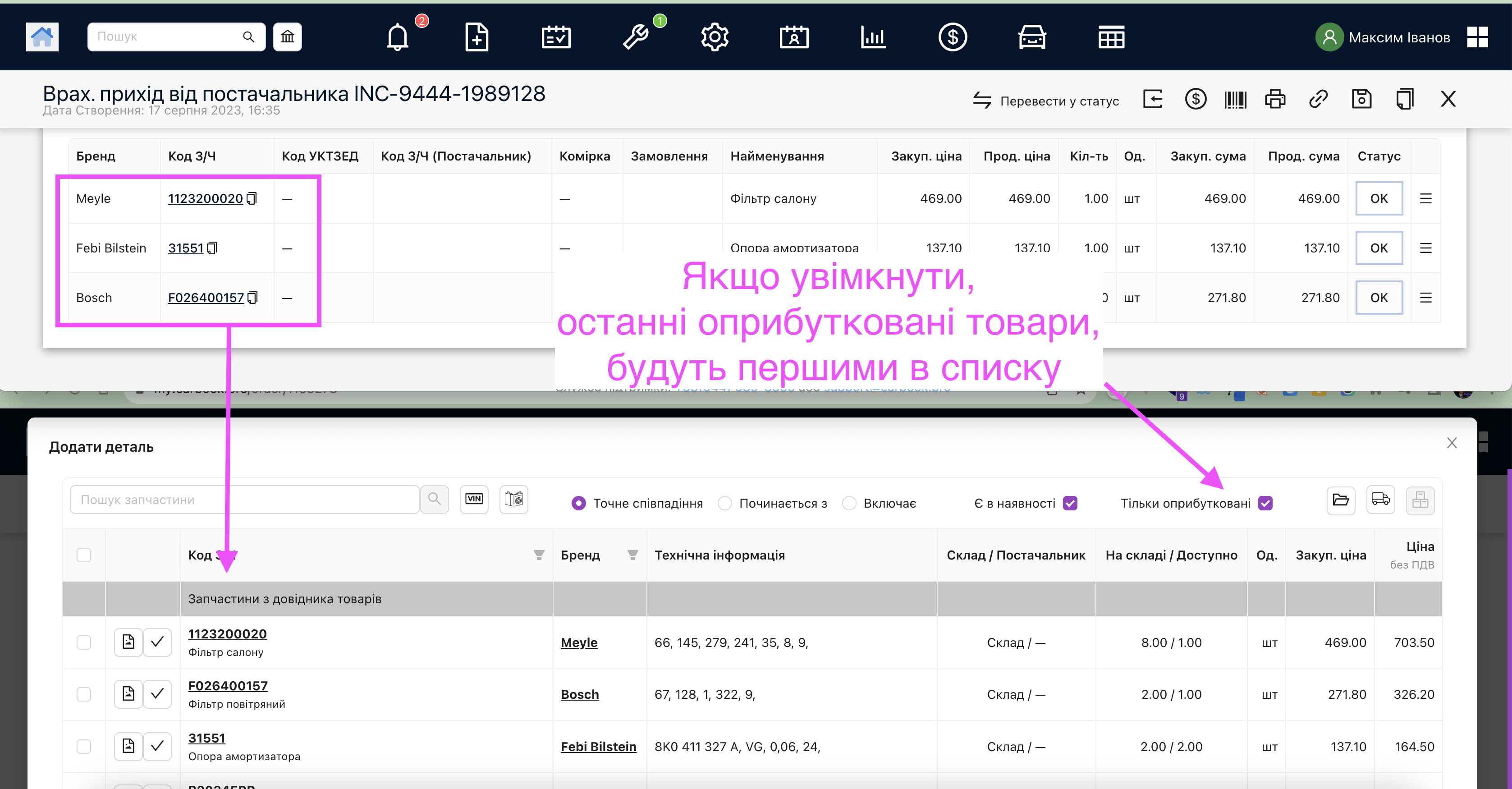 o В наряд-замовленні додане поле «Сума закупки» в запчастинах.