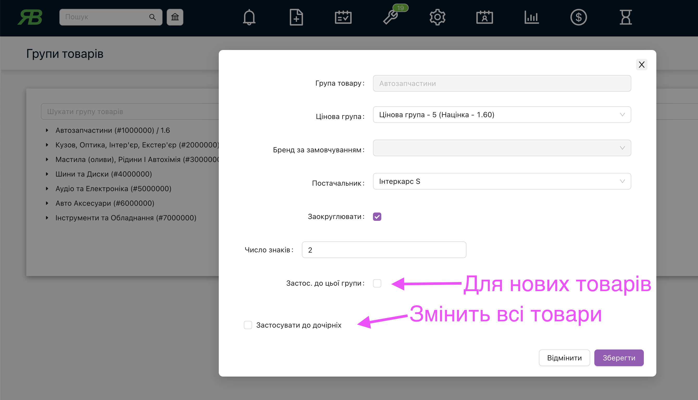 o Для певної групи товарів, задати заокруглення для нових товарів.