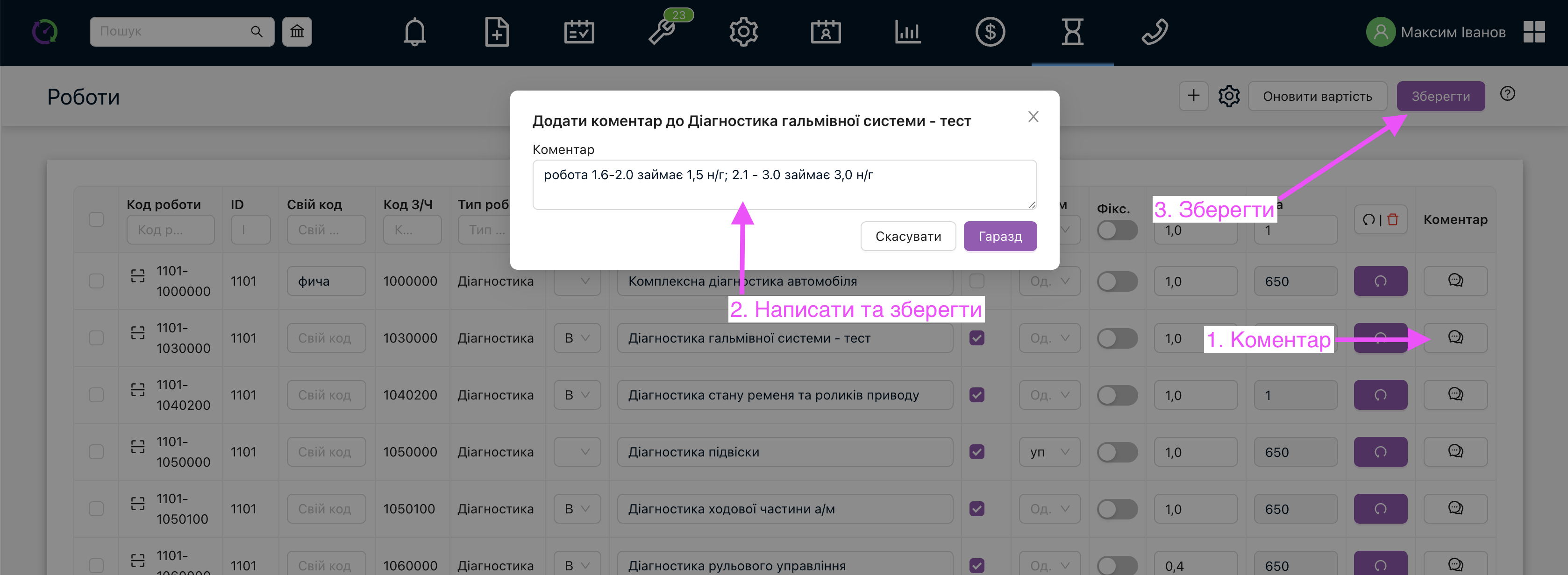 - Діагностики – коментар із діагностик знову потрапляє до робіт