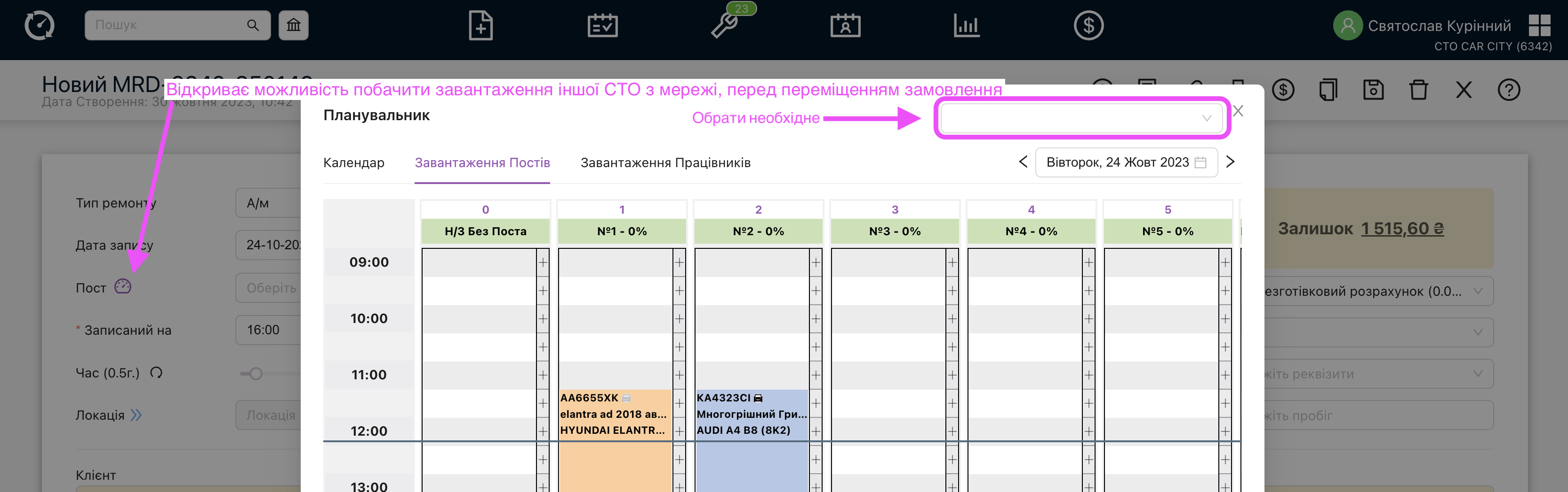 - Коректна зміна механіка при переміщенні на планувальнику