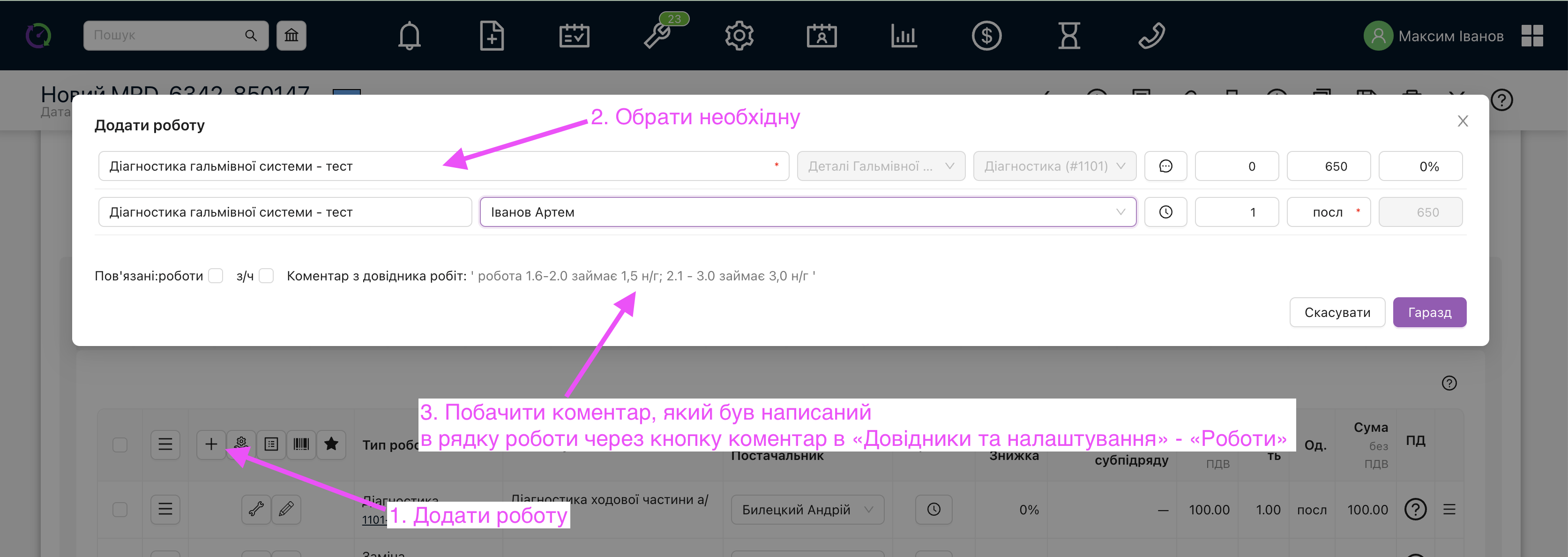 - Роботи – додавання комплексів робіт, додавання робіт