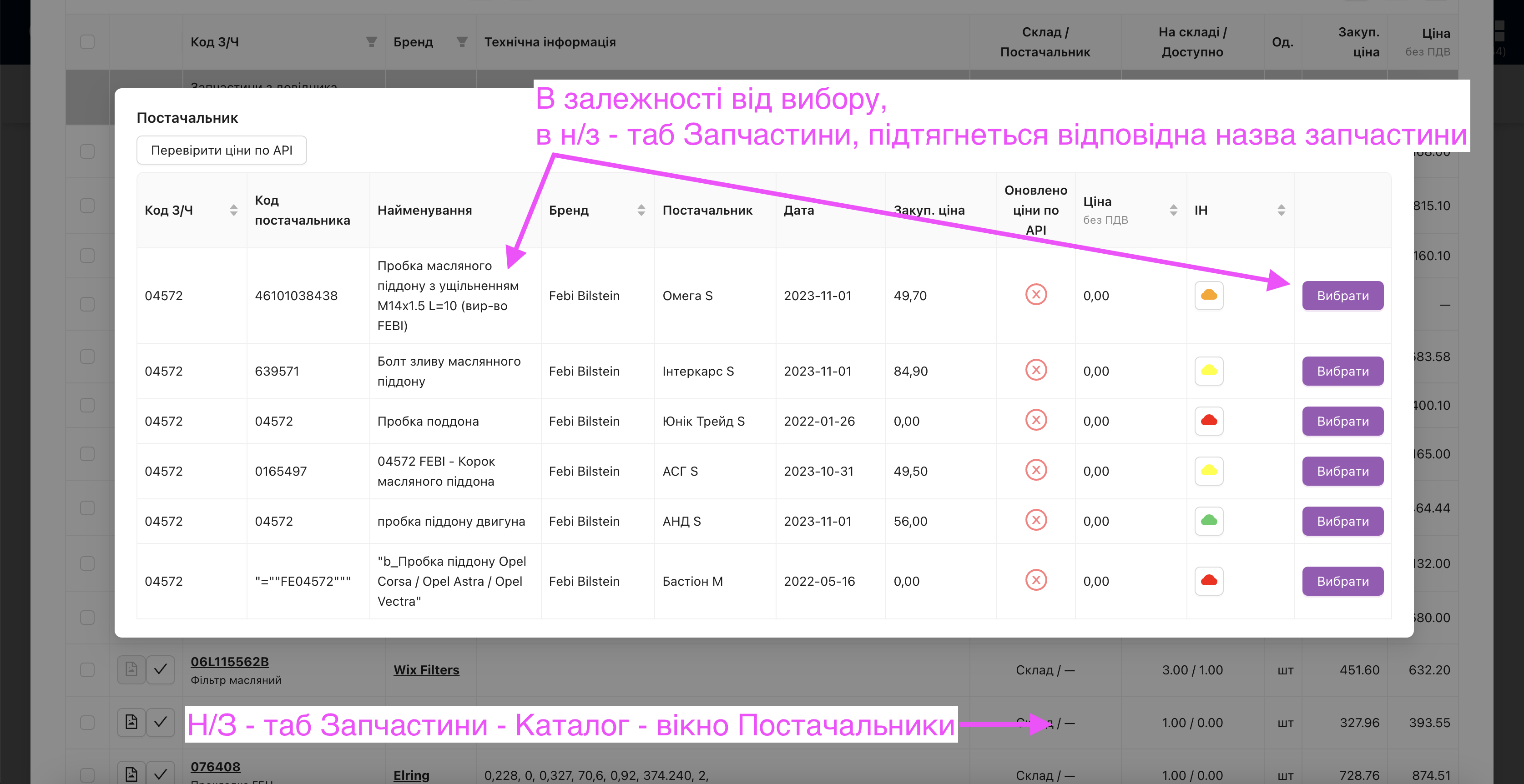 - Запчастини – модалка Каталог – модалка Постачальники – якщо назва з/ч порожня, то підтягує назву з прайслиста Постачальника