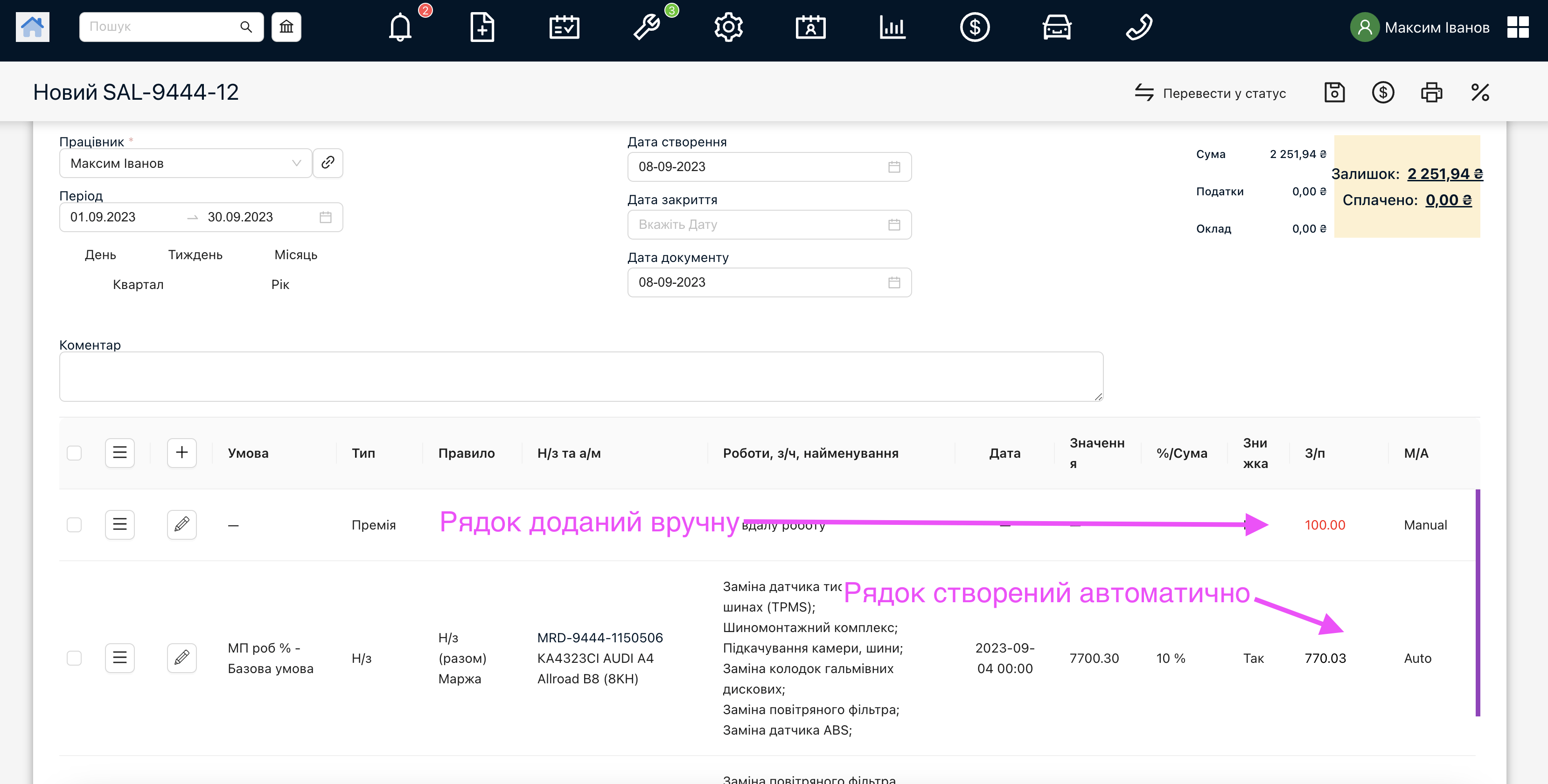 В цьому меню, можна вручну створювати або автоматично розраховувати зарплати для працівників.
