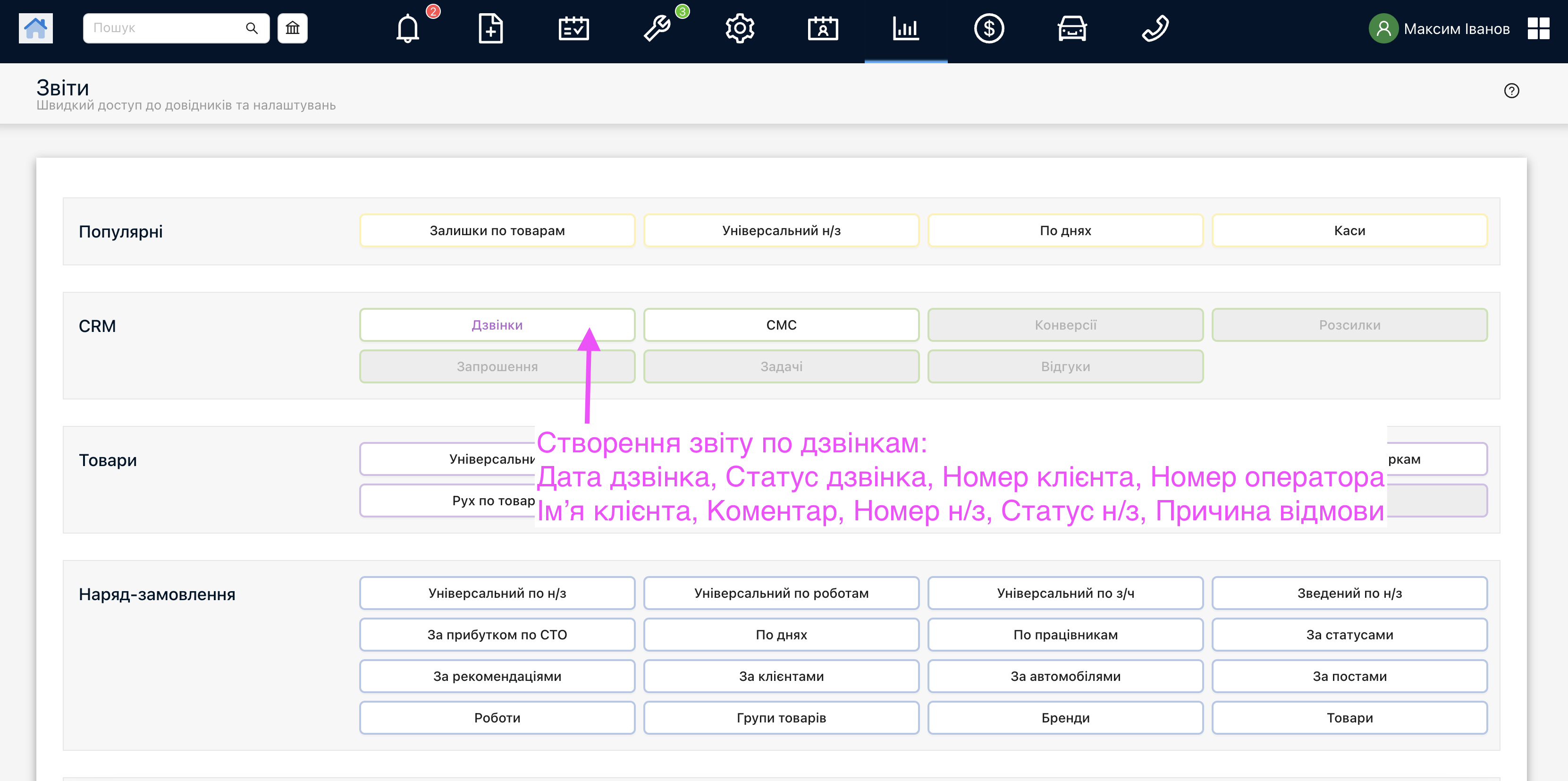 • Звіти — Дзвінки — Модалка формування звіту дзвінків.