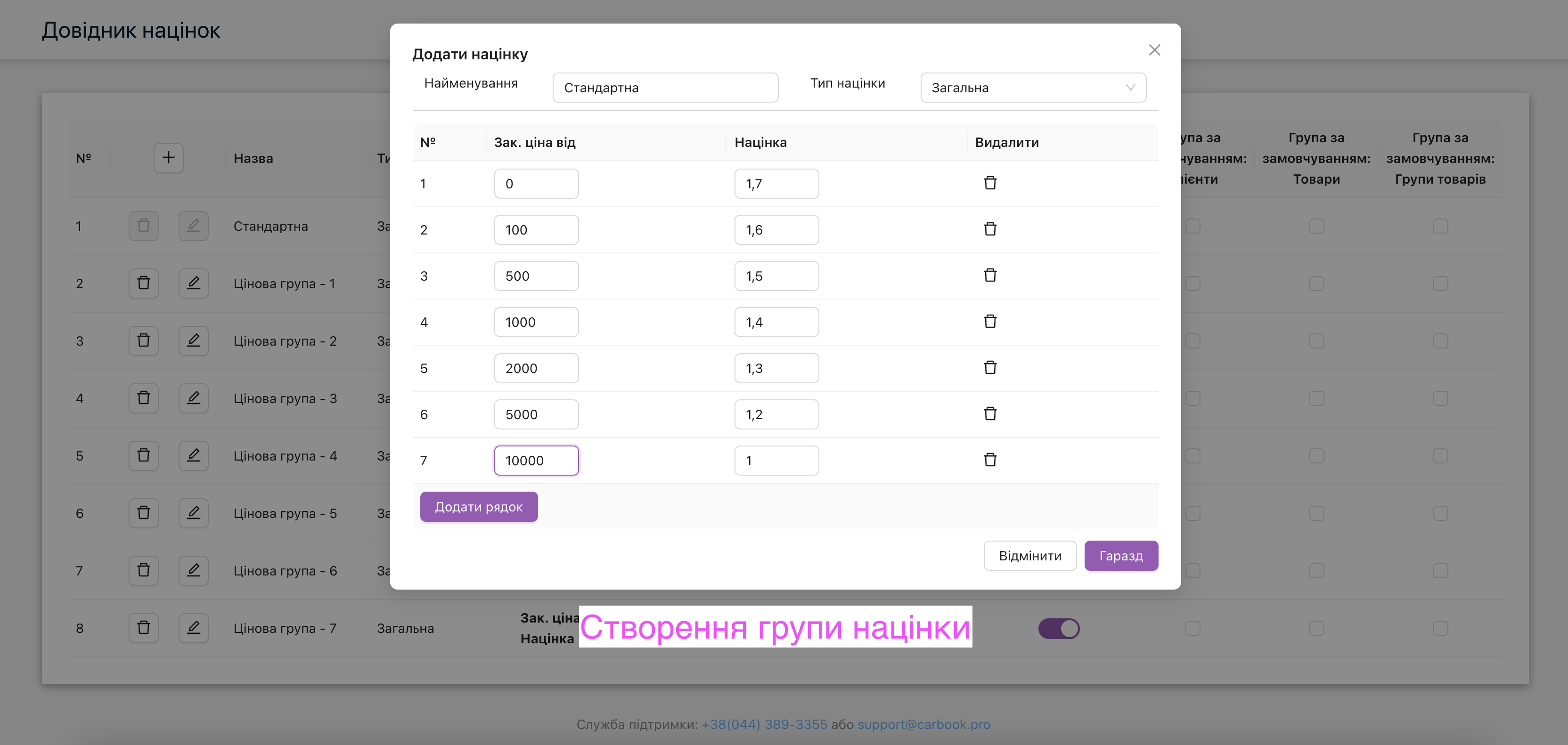 Детальніше в статті “Як налаштувати націнки в CARBOOK?“