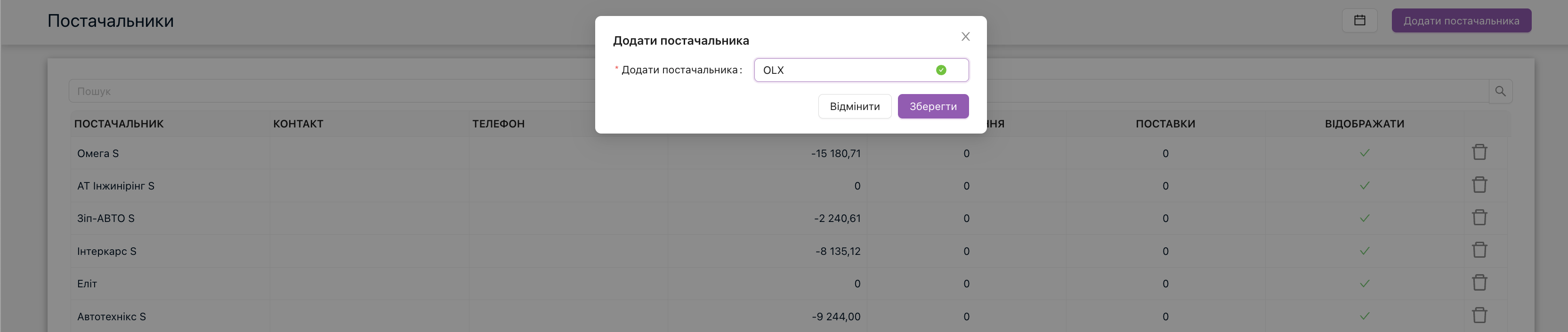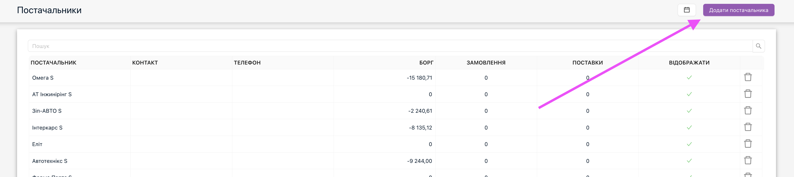 Для цього є розділ “Довідники та налаштування” -> “Постачальники” і в середині є кнопка “Додати постачальника”.
