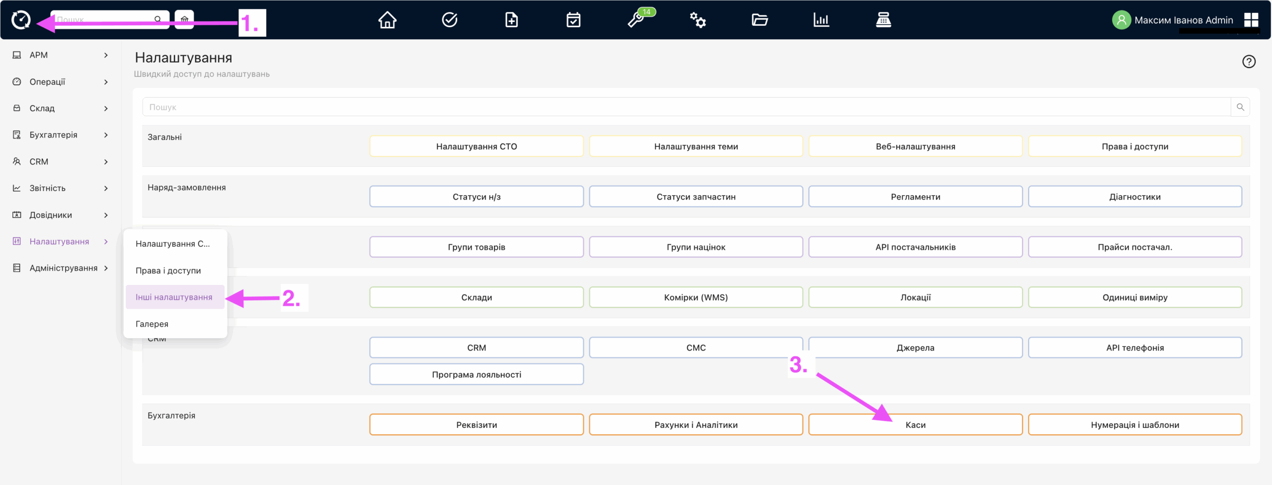 • Зайдіть у свій обліковий запис Carbook.ua з Права доступу “Керівник”, “Адмін”, “Бухгалтер”.