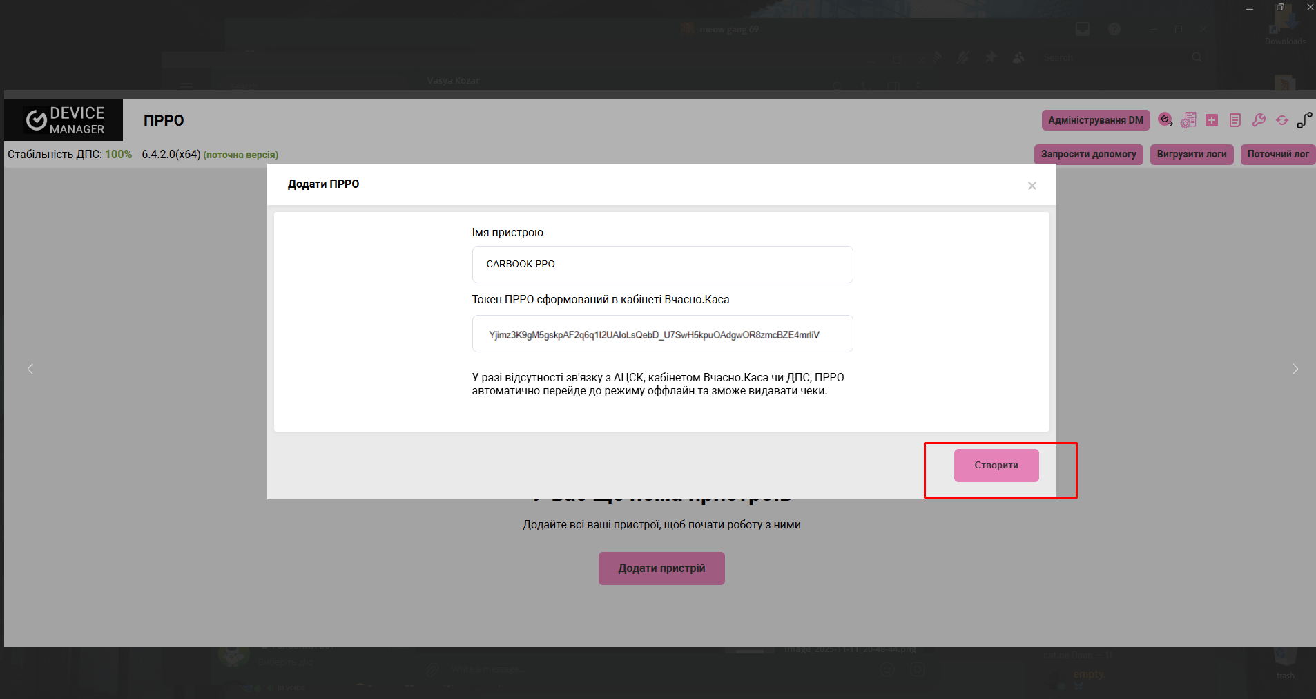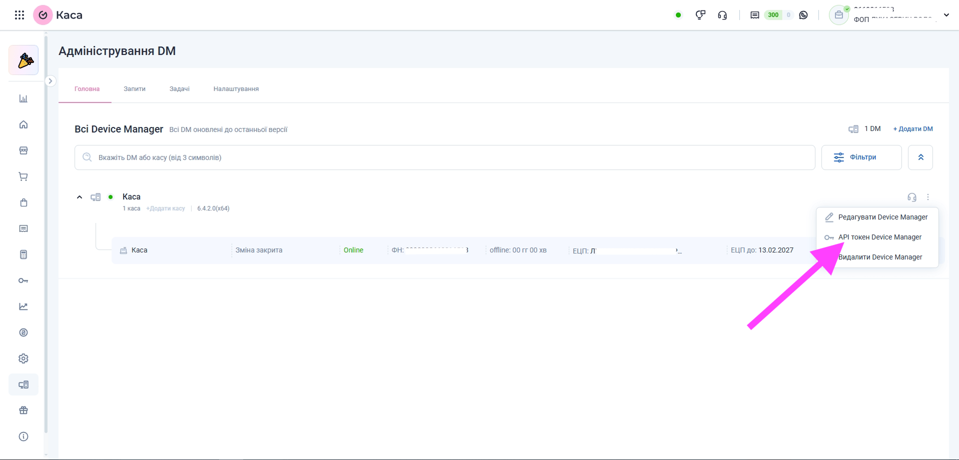 Налаштування каса – генерація токена для налаштування Device manager від Вчасно.Каса.