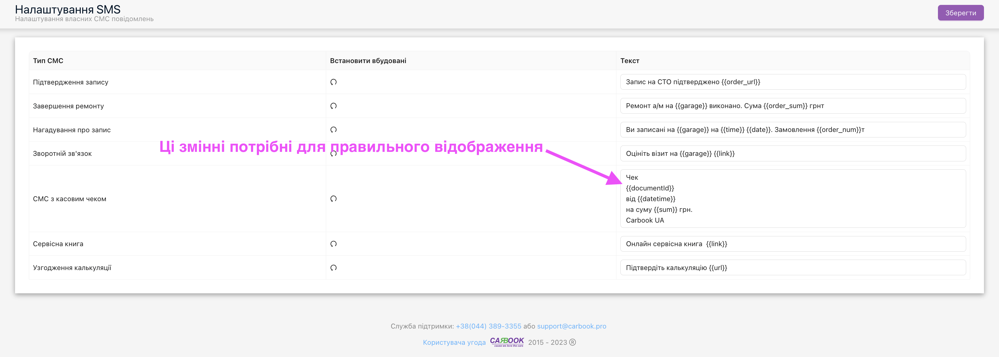 Головне не прибирати слова в фігурних дужках, інакше не будуть відображатись системні дані, типу назва СТО чи інші важлива інформація.