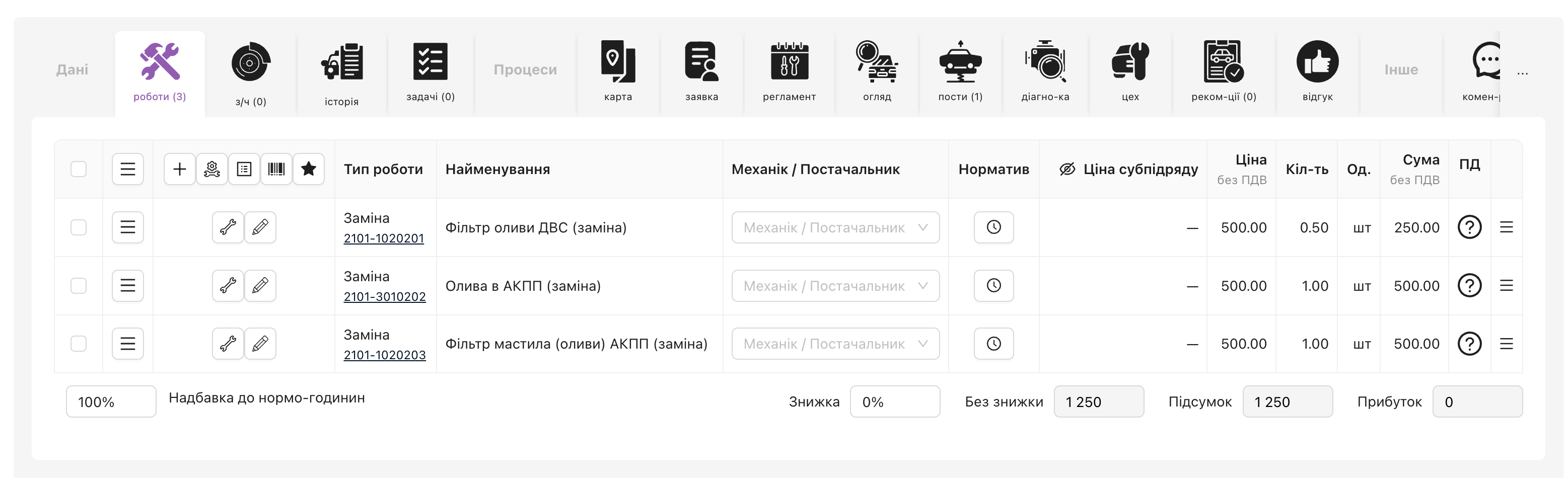 Ось, додані роботи в наряд-замовлення, можемо виконувати.