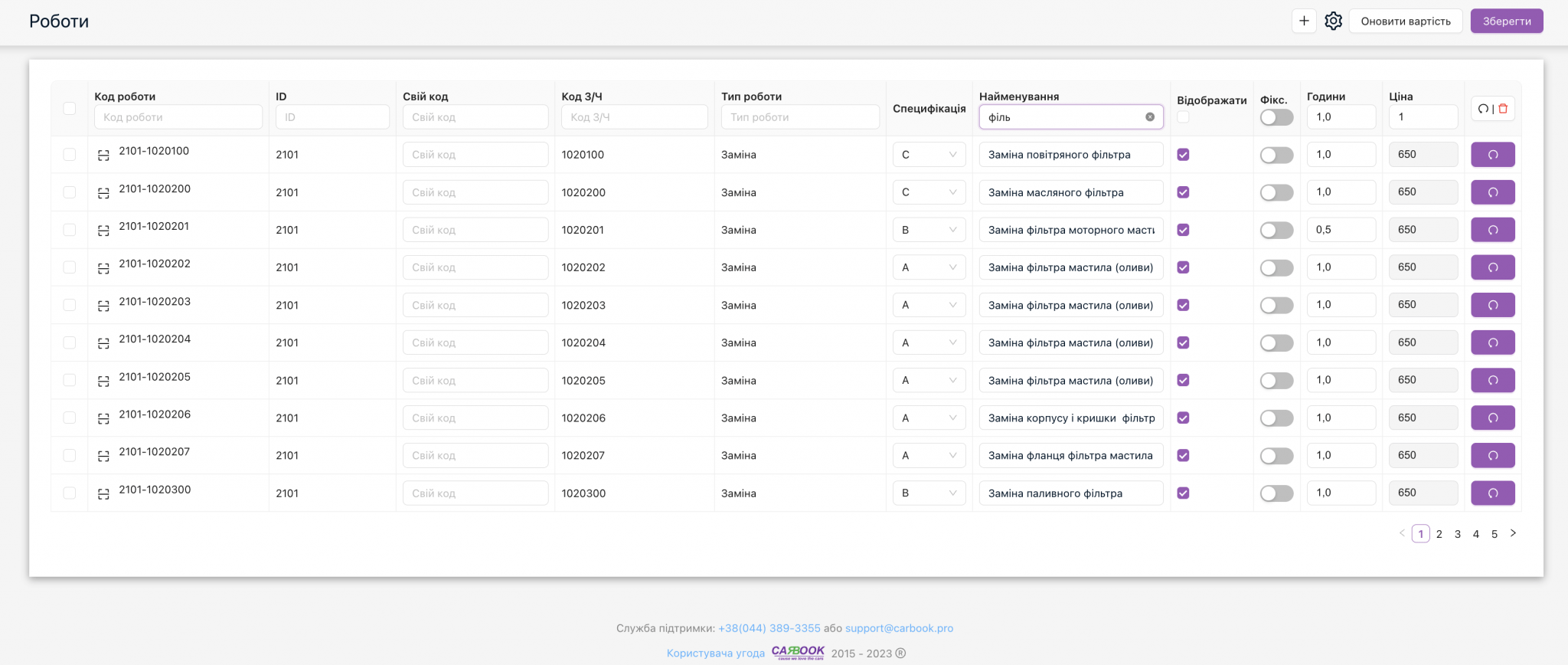 Отже, як ми бачимо, якщо у працівника обрано в правилі клас С – в нас зараз – “заміна масляного фільтра”, то ця робота буде рахуватись згідно з правилом, яке ми налаштуємо. Також на скріні гарно видно, що пошук можливий по декільком буквам, тому не обовʼязково писати все речення, можна скорочувати, типу “зам рем ген” (заміна ременя генератора).