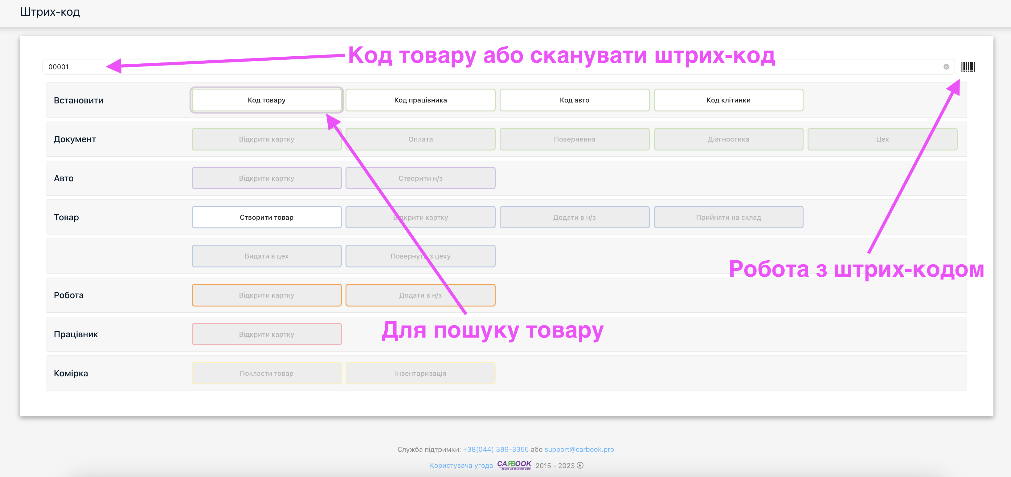 Ось так виглядає вікно роботи зі штрих-кодом.