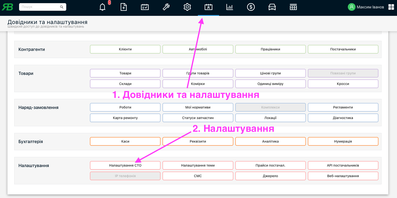 Один з варіантів — це зайти в “Довідники та налаштування”, потім в самому низу обрати “Налаштування СТО”. Далі у відкритому вікні обрати вкладку “Друковані форми”.