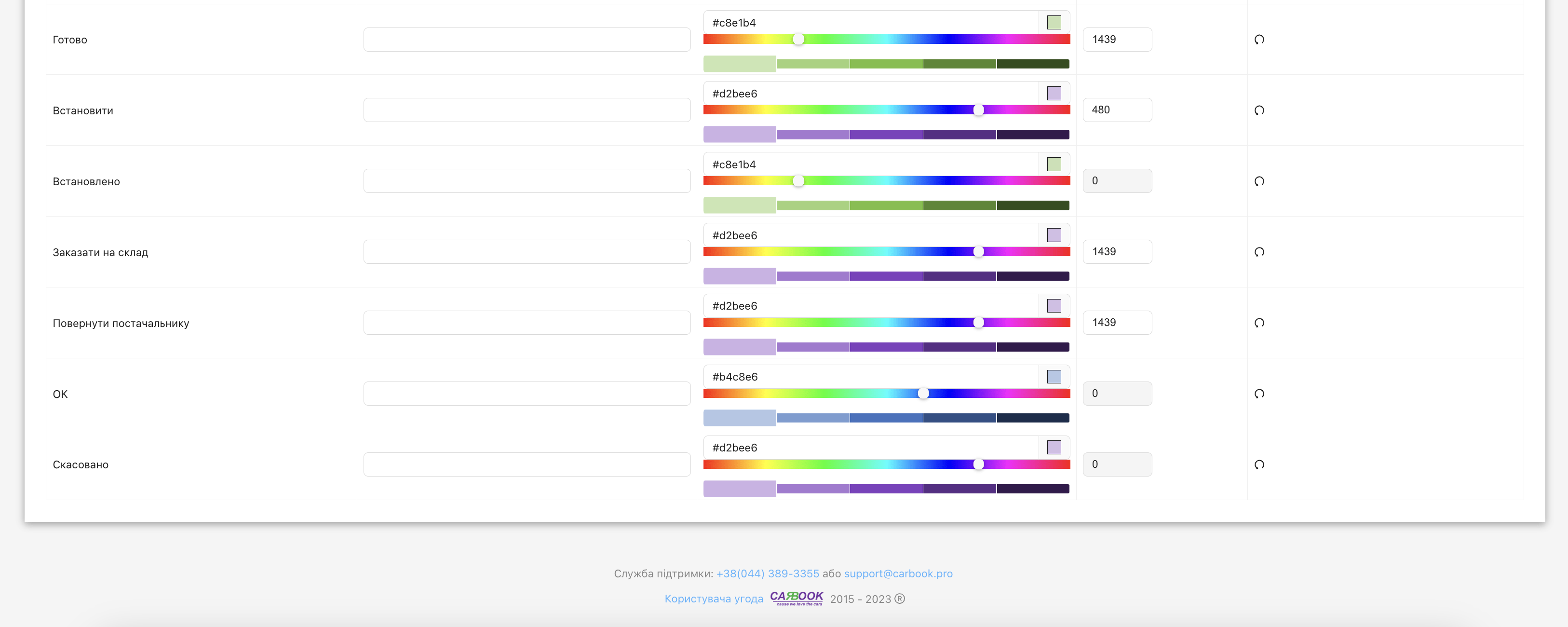 А ось можливі налаштування для кольорів цих статусів.