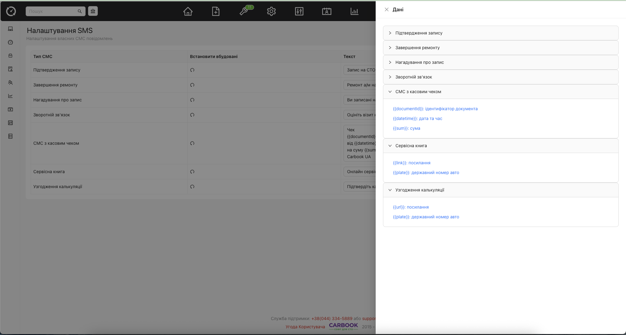 - Додано швидкий перегляд усіх можливих змінних для СМС.