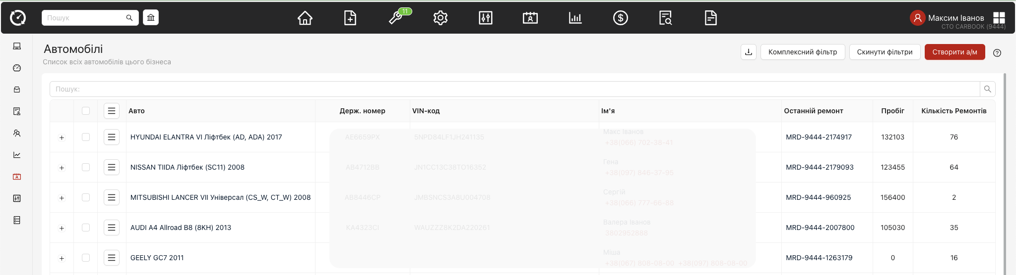 - Додано стовпчики: “Пробіг”, “Кількість ремонтів”, “Останній ремонт” із урахуванням встановленого фільтра.