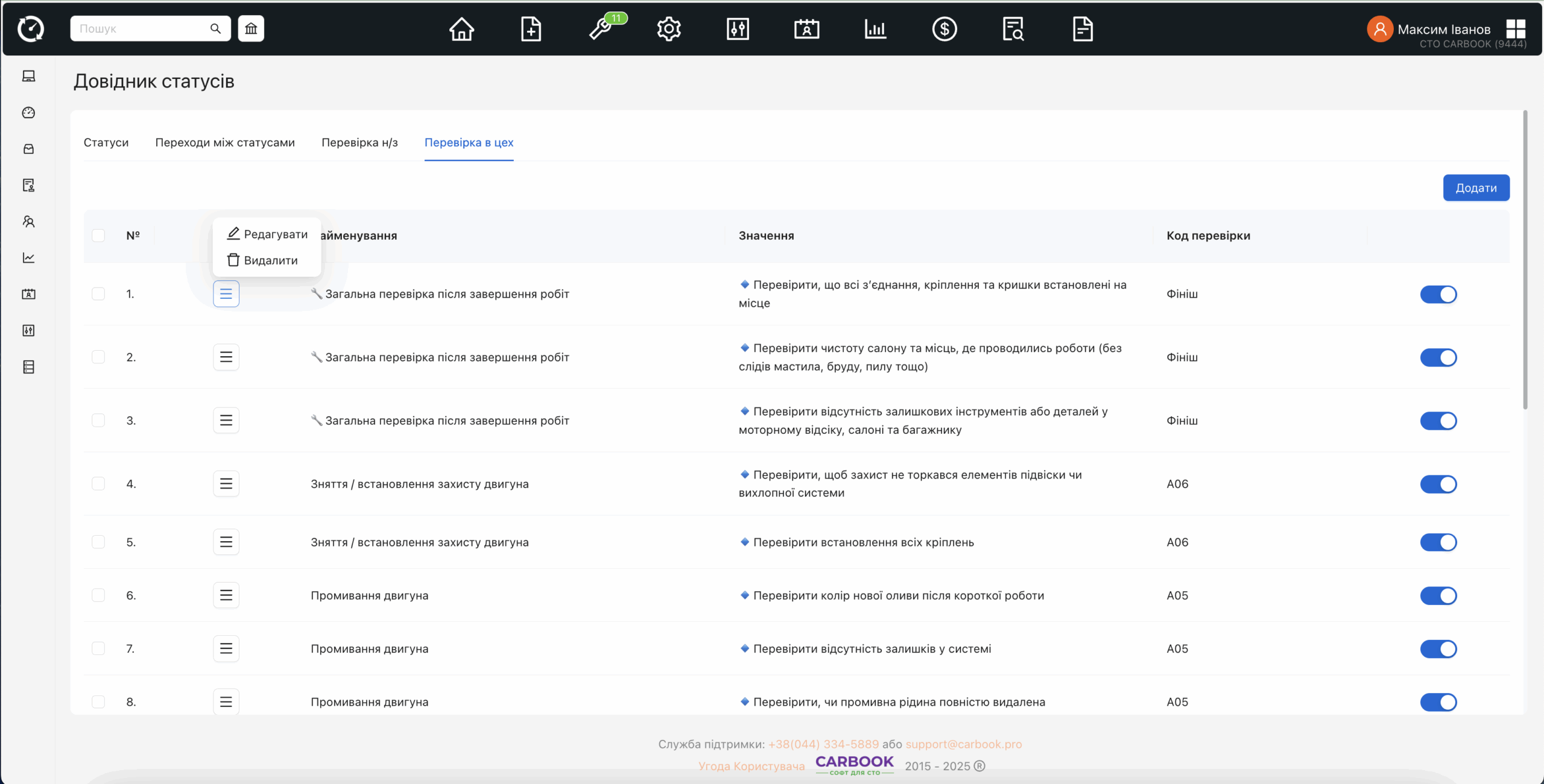 - “Інші налаштування” – “статуси н/з” – “Перевірка в цех” – створено окремий довідник перевірок для табу цех, з можливістю привʼязки до конкретної роботи.