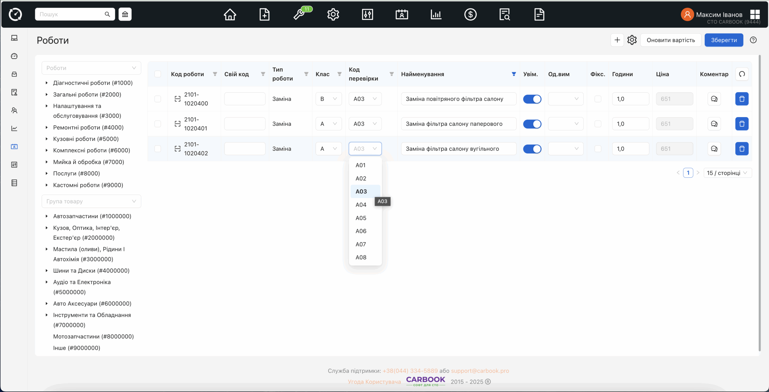 - В довіднику робіт — додано стовпчик з можливістю додавання коду перевірки від А01 до А50. Один код перевірки, можна задати декільком роботам. Код “Фініш” задати в довіднику не можна, тому, що це загальна подія — завершення робіт в табі цех, а не конкретна робота.