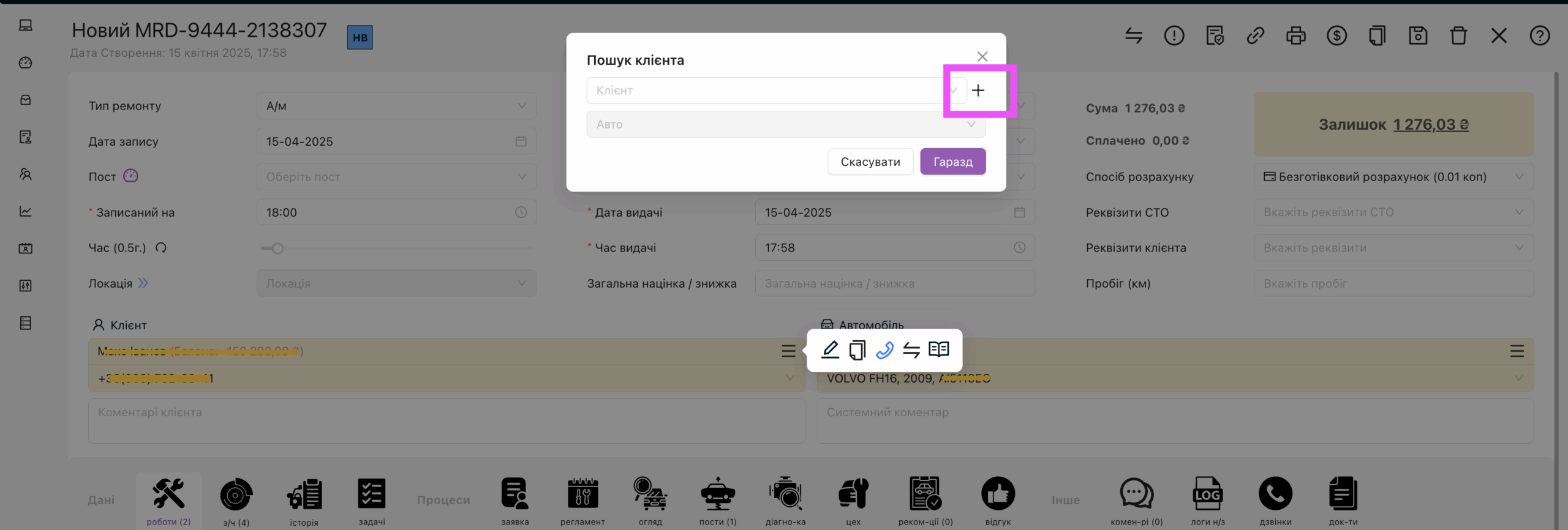 - Додана кнопка в модалці “зміна клієнта” – створення клієнта та подальше автоматичне його додавання до поточного н/з.