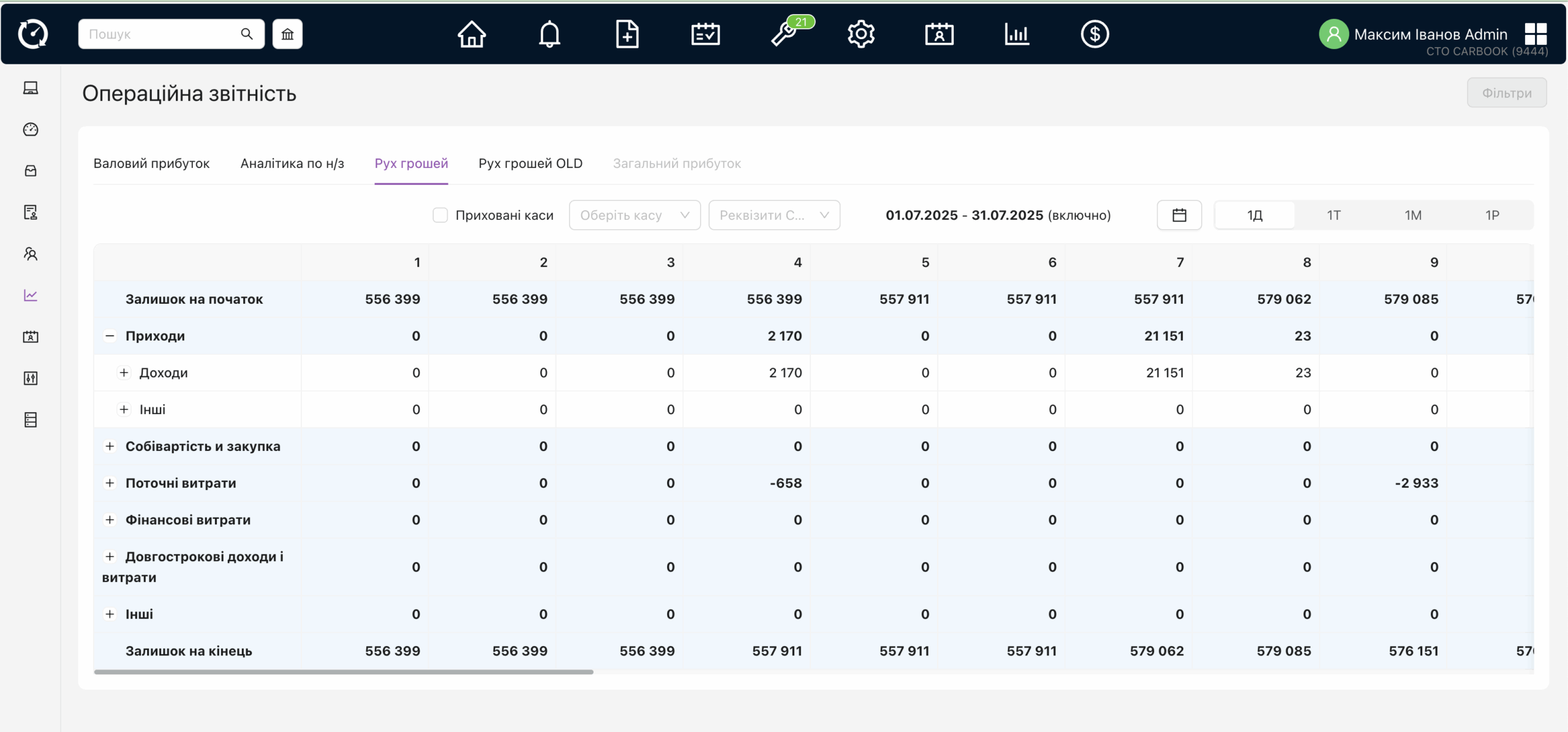 - “Операційна звітність” – додано новий таб Рух грошей, а старий таб змінено назву на Рух грошей (OLD).
