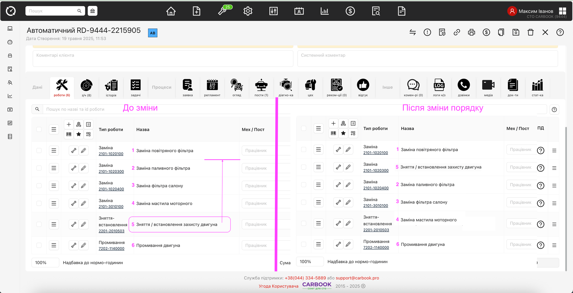 - Виправлена робота пагінації в табах “Роботи” та “з/ч”.