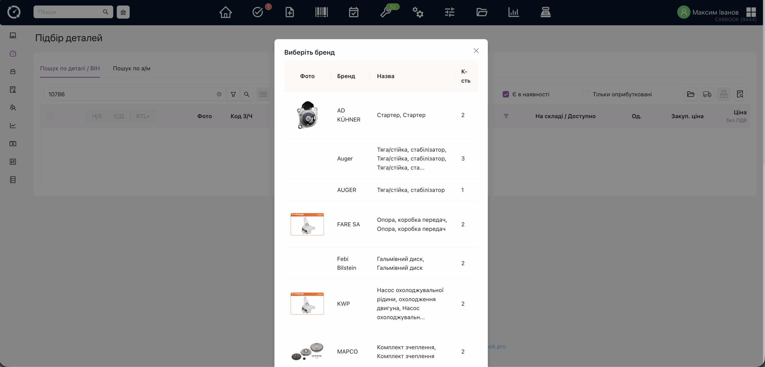 - Оновлено дизайн вікна підбору – з швидким переглядом картинок товарів з бази TecDoc.