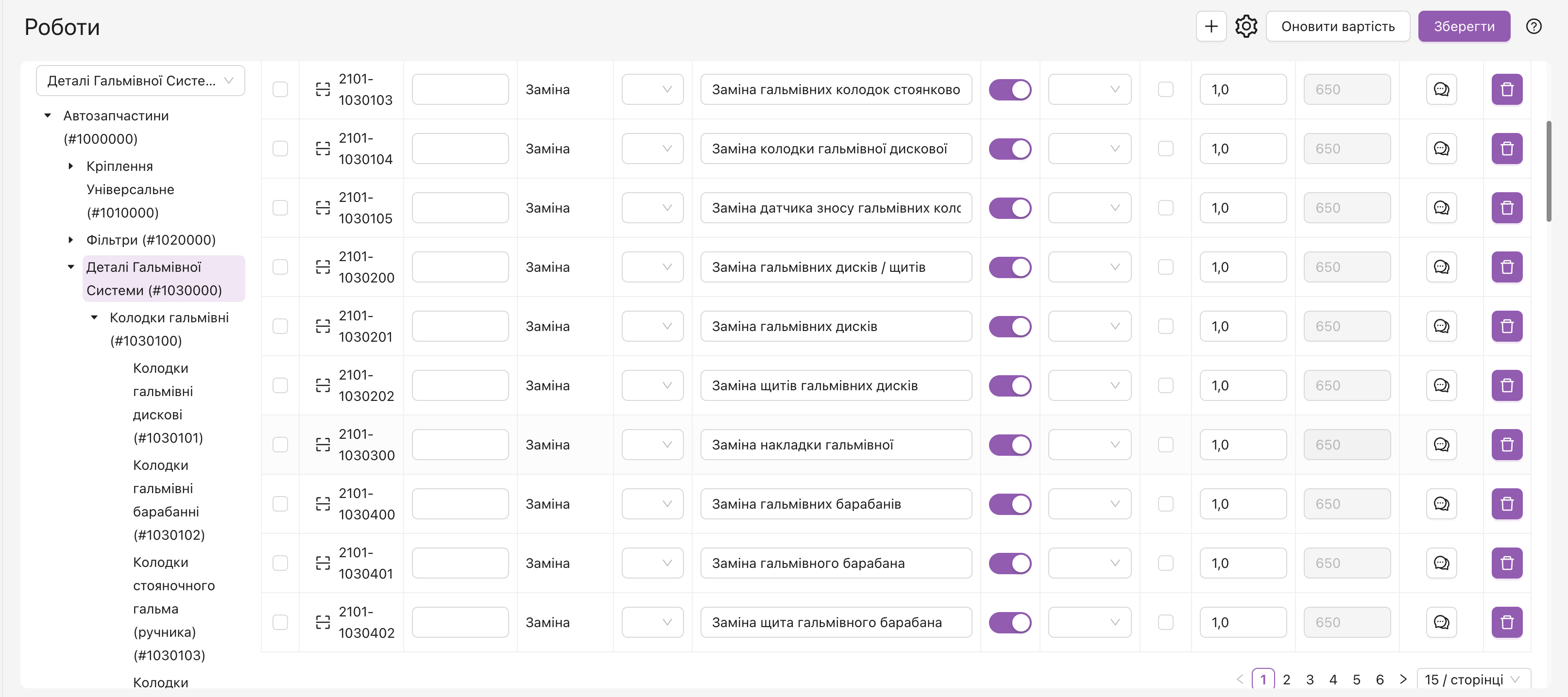 - Налаштована робота фільтрів по коду та бренду, незалежно від кількості сторінок довідника.