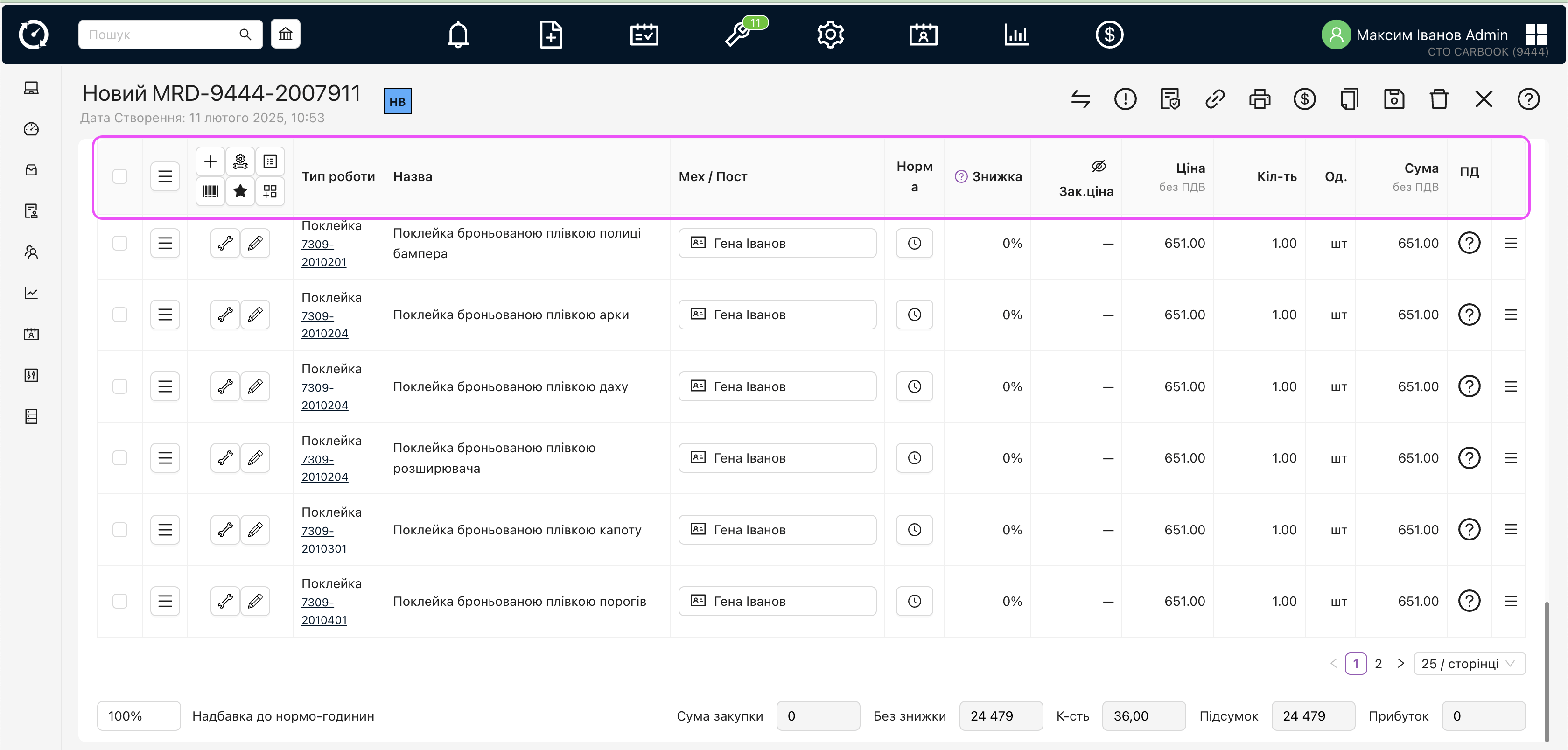 • При додаванні робіт до н/з із калькуляції береться кількість з довідника робіт.