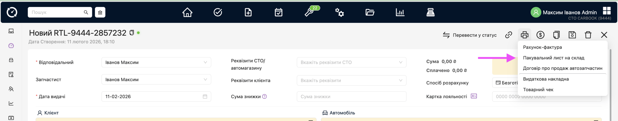 - Відображення документів типу RTL, для створення касового чека повʼязаного з товарним чеком.