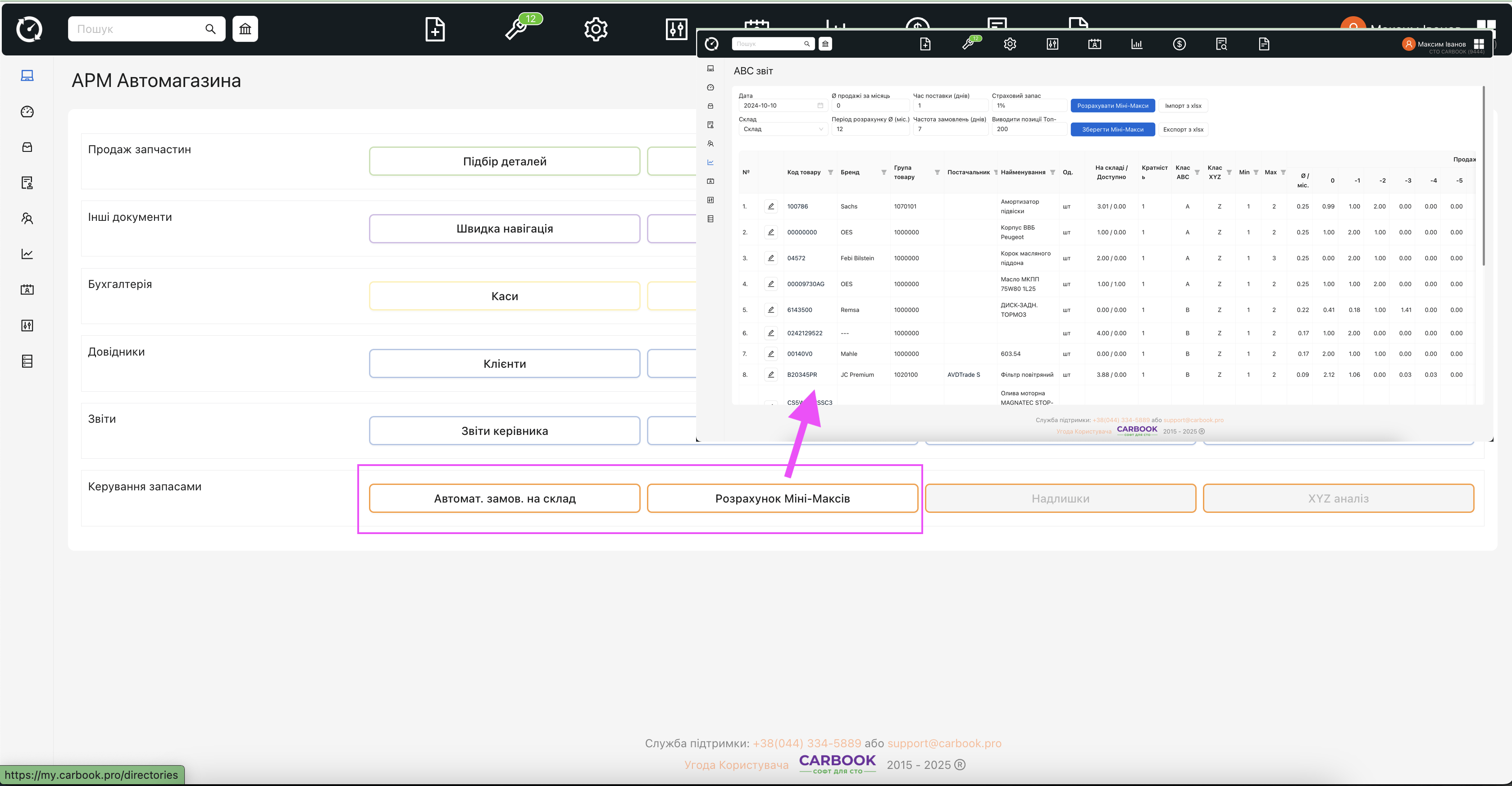 - “АВС аналіз” – змінено назву на “розрахунок мінімаксів” – посилання відкриває відповідну сторінку звіту.
