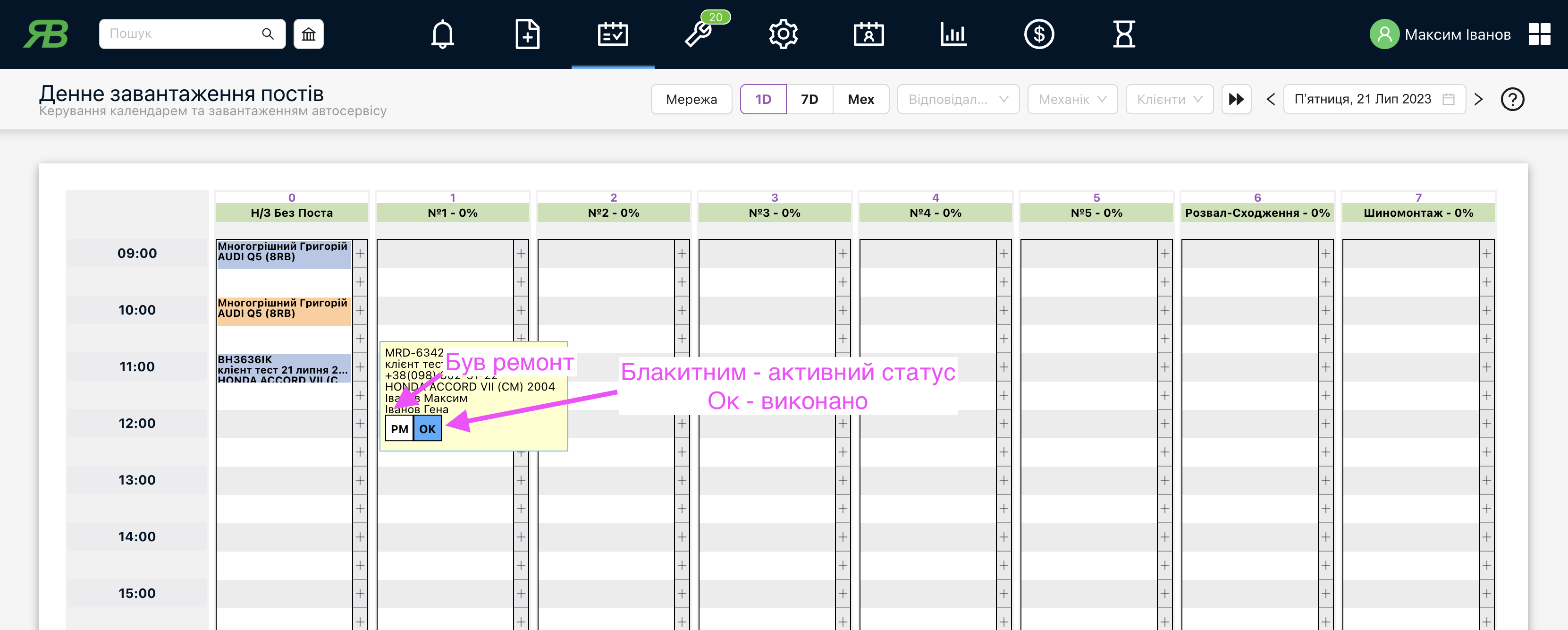 • Після Ремонту – всі з/ч у статусі «Встановлено» або вищому, а всі роботи в вкладці “Цех” в статусі «Зроблено»;