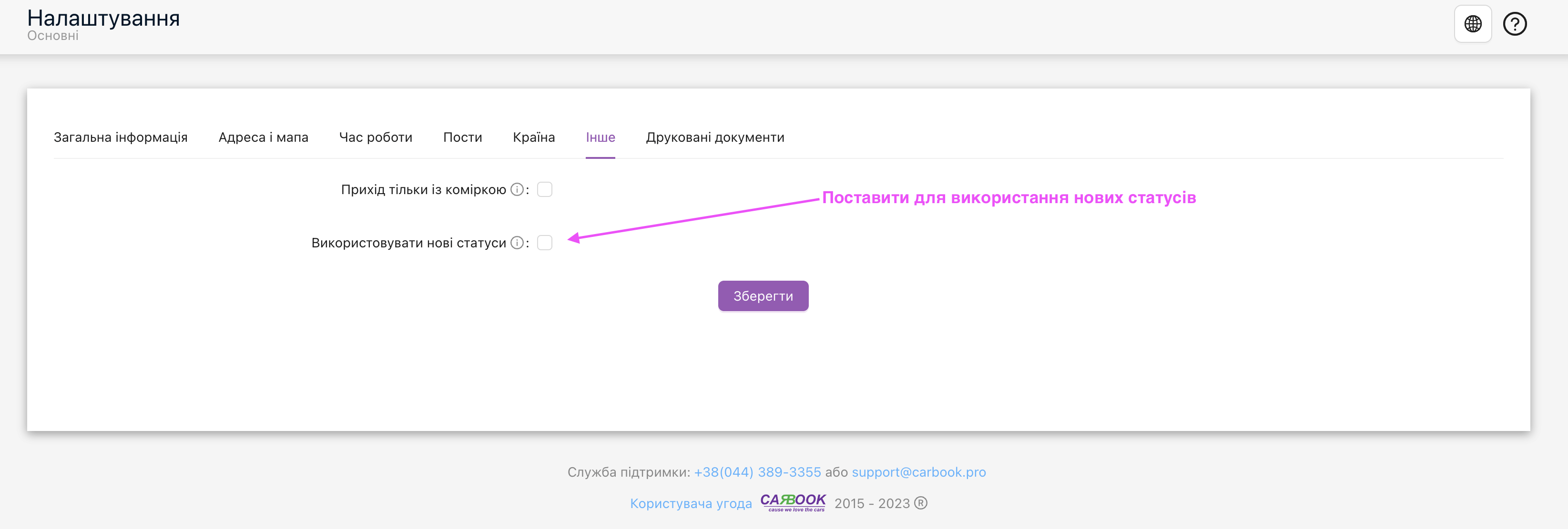 Для налаштування перейдіть в “Довідники та налаштування” потім оберіть “Налаштування СТО” та у вкладці “Інше” оберіть “Використовувати нові статуси“.